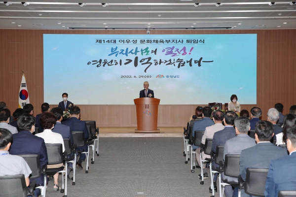 이 부지사는 “문화가 꽃피는 충남은 아직 완성형이 아닌 현재 진행형인 만큼 후배 공직자들이 그 길을 끊임없이 개척해 주기를 바란다”며 “저 또한 자연인으로 돌아가서도 문화 충남의 길을 열심히 응원하겠다”고 퇴임사를 마쳤다.