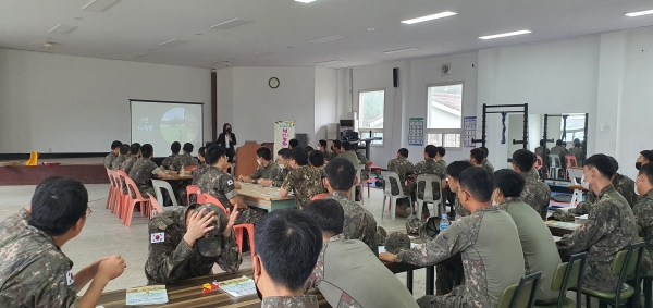 이번 교육은 장병 45여명이 참석한 가운데 엘림아동가족상담연구소 대표 이선영 강사가 ‘성숙한 사랑이야기’라는 주제로 강의를 진행했다.