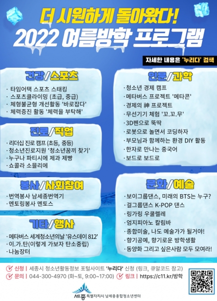 남세종종합청소년센터 여름방학 프로그램 풍성