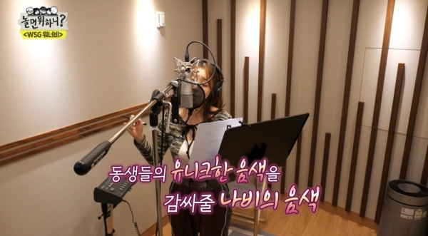 [Ytv영상스토리] ‘WSG워너비’ 나비가 팀의 중심을 잡는 깊이있는 음색으로 디바형 가수로서의 면모를 뽐냈다 지난 2일 방송된 MBC 예능프로그램 ‘놀면 뭐하니?’에서는 콴무진 팀의 일원으로 나비, SOLE, 권진아, 엄지윤이 결정된 가운데 데뷔곡을 녹음하는 멤버들의 모습이 그려졌다.