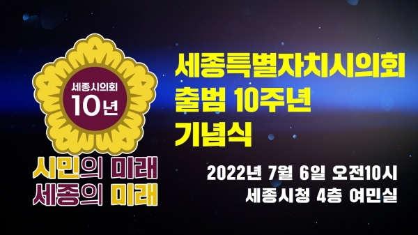[Ytv영상스토리] 세종특별자치시의회는 오는 7월 6일 세종시청 4층 여민실에서 역대 시의원을 포함한 내외빈 300여명을 초청해 비전 선포 및 사진전 등 ‘세종시의회 출범 10주년 기념식’을 거행한다.