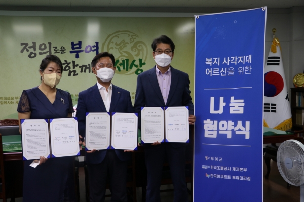 [Ytv영상스토리] 부여군은 최근 한국조폐공사 제지본부와 한국야쿠르트 부여대리점과 폭염 취약 독거노인 안부확인 사업을 위한 협약식을 진행했다.