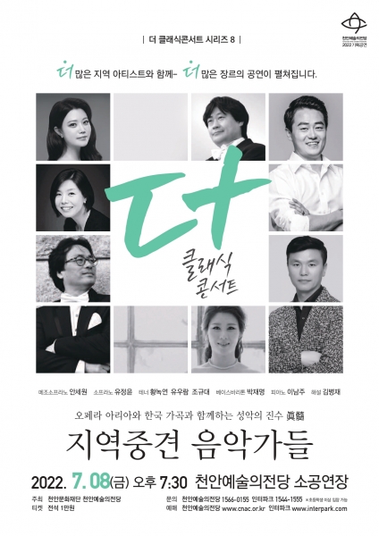 매월 새로운 프로그램으로 기획된 더 클래식 콘서트 시리즈는 내실 있는 연주와 다양한 프로그램 구성이 더해져 천안을 대표하는 새로운 아티스트들의 활약이 기대되는 프로젝트이다.