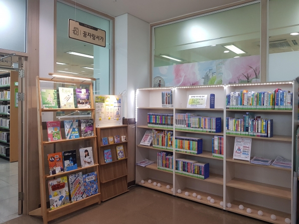 꿈자람 서가란 아동·청소년 인구 비율이 높은 도서관 주변 환경에 맞춰 그간 관심과 대출이 많았던 진로와 직업에 관한 분야를 특화한 서가이다.