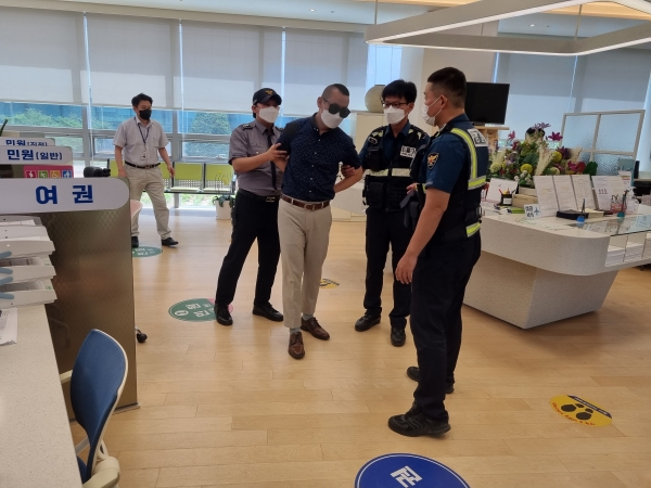 모의훈련은 코로나19 장기화에 따른 민원인의 위법행위 증가에 따라 민원담당 공무원을 보호하고 현장 대응역량을 높이기 위해 마련했다.
