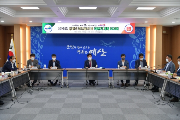하반기 군은 민선8기 출범과 군수 공약사업 확정, 2030 예산군 중장기종합발전계획 수립, 2023년 정부예산 중점확보 총력, 더본외식산업개발원 연계 지역상생 프로젝트, 충남혁신도시 지방자치단체조합 출범, 제21회 세계한민족여성네트워크 대회 개최, 예당호 모노레일·워터프론트·쉼하우스 준공, 대통령기 전국 조정대회 개최, 예산제2일반산업단지 등 신규산업단지 조성, 예산군 폐기물처리 시설 설치, 벼 병해충 예방 항공공동방제, 서해선복선전철 삽교역사 신설, 삽교신역사 주변 도시개발사업, 중대재해예방 안전보건관리체계 구축, 예산정수장 확충사업 착공 등에 나설 계획이라고 전했다.