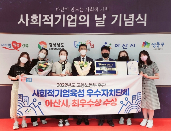 앞서 2020년 사회적기업육성 평가에서도 최우수상을 받은 바 있는 시는, 코로나19 상황에도 민관 협업형 네트워크 활성화를 바탕으로 아산시만의 특화정책인 시설비 지원사업과 경쟁력강화사업, 공동협력사업, 아사달인 꿈이룸 디자인 사업으로 사회적기업의 꾸준한 성장과 지역사회 문제 해결을 위한 다양한 일자리 창출을 이끌어 다시 한번 수상의 영예를 안았다.