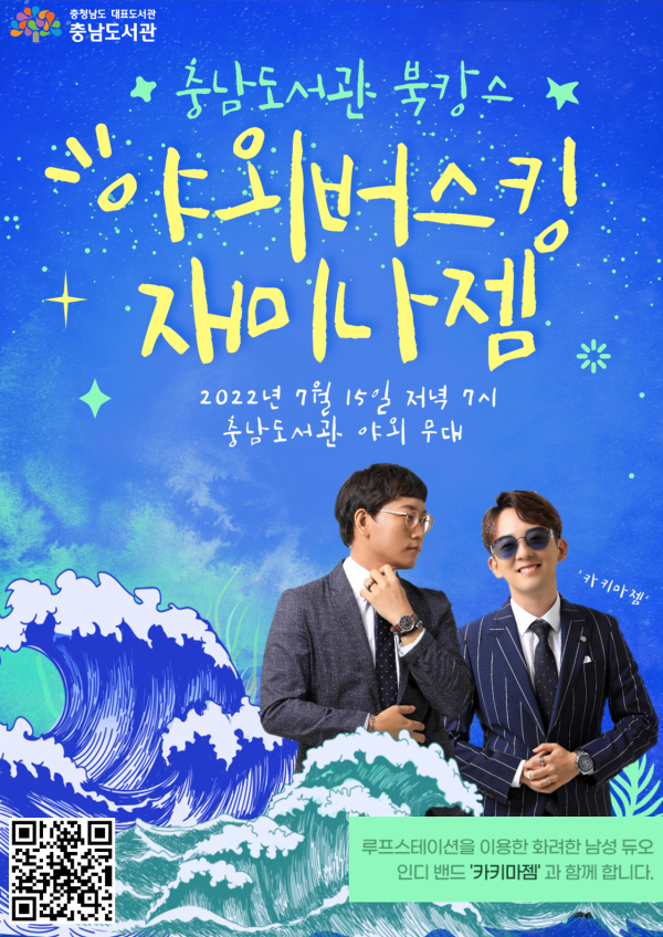 15일에는 도서관 야외무대에서 실력파 인디밴드 카키마젬의 야외 버스킹 공연이 열린다.