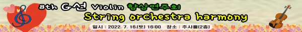 1년 6개월 마다 연주회를 개최해왔던 ‘G선 바이올린’은 코로나19로 인해 한동안 연주회를 중단했으며 2년 6개월 만에 이번 제8회 연주회를 개최한다.