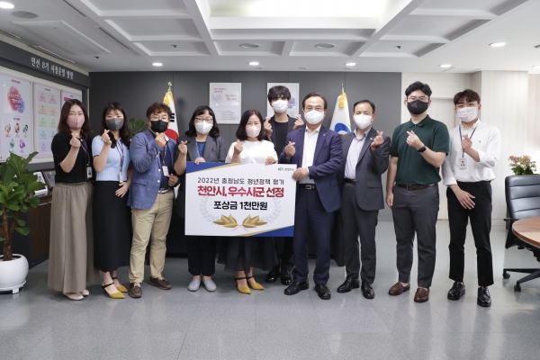 [Ytv영상스토리] 천안시가 충청남도 주관 ‘2022년 청년정책 우수시군 평가’에서 도내 15개 시군 중 1위를 차지해 1000만원의 포상금을 받게 됐다.
