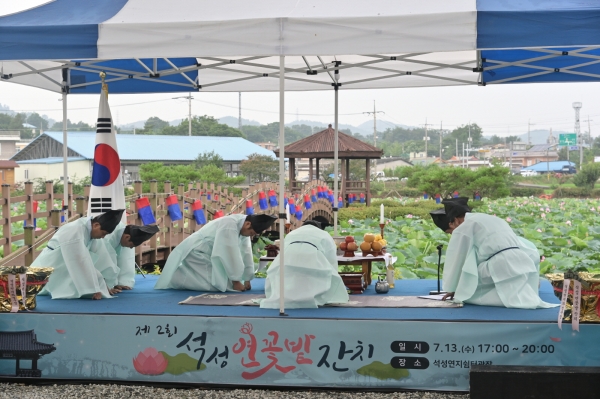 초헌관은 김지태 석성면장, 아헌관은 이경복 문화재보존복원위원장, 종헌관은 황국진 연꽃밭잔치추진위원장이 각각 맡았다.