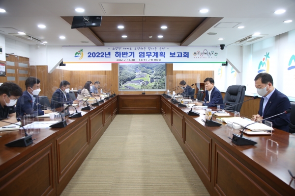 이번 보고회는 박범인 금산군수 주재로 실·과·단, 직속기관, 사업소 부서장 및 팀장이 참석한 가운데 민선8기 비전과 목표, 중점전략에 대해 공유하고 하반기 발전방향 등을 논의했다.
