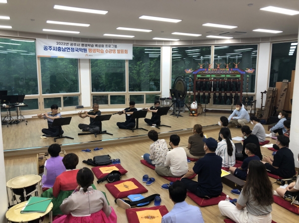대금 과정 학습자는 “어릴 때부터 대금을 배우고 싶었는데 시골에서 기회도 없었고 바빠서 못했는데 평생학습을 통해 이제 숨겨둔 꿈을 다시 찾게 됐다”며 소감을 남겼다.