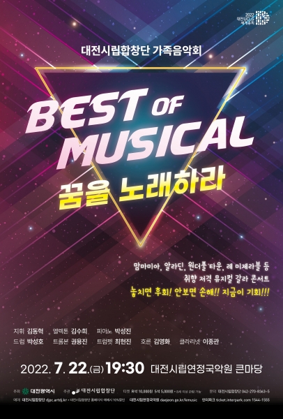[Ytv영상스토리] 대전시립합창단 가족음악회 ‘Best of Musical 꿈을 노래하라’가 오는 22일 금요일 오후 7시 30분 대전시립연정국악원 큰마당 무대에 오른다.