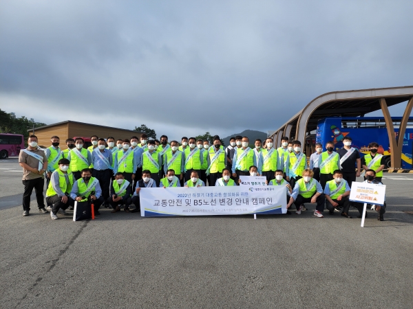 이번 캠페인은 노사가 자발적으로 참여해 세종시 사고다발지역과 주요 정류장에서 B5노선 운행체계 전면 개편에 따른 무사고 기원을 담은 안전의식 고취 캠페인으로 진행됐다.