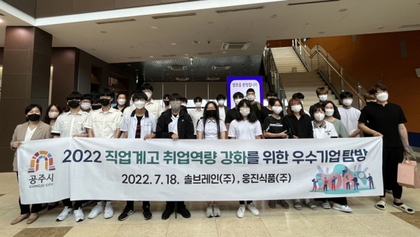 탐방은 공주마이스터고 공주생명과학고 공주정보고 3학년 재학생 30여명이 참여한 가운데 학생들의 전공을 고려해 선정된 IT 관련 핵심소재를 생산·공급하는 솔브레인과 식음료 생산을 대표하는 웅진식품를 방문했다.