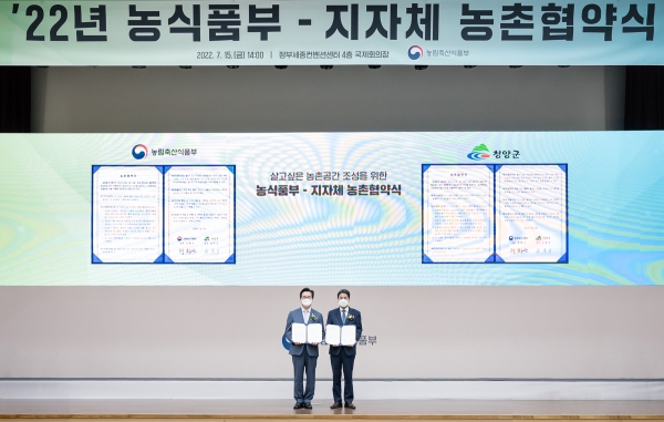 지난 15일 세종컨벤션센터에서 진행된 협약식에는 정환근 농식품부 장관과 김돈곤 군수를 비롯해 지난해 농촌협약 대상 지자체로 선정된 20개 지자체장이 참석, 향후 본격 추진할 대상 사업과 연계사업에 대한 추진 의지를 다졌다.