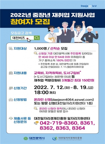 온라인 신청이 어려운 경우 대전일자리지원센터에서 방문 신청도 가능하다.
