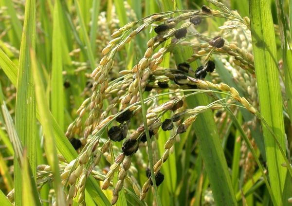 발생 초기 벼알 표면에 황록색의 둥근 곰팡이가 나타나 점차 검은색으로 변하며 생산량과 품질을 크게 떨어뜨린다.