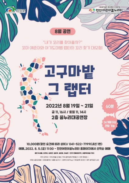 공연프로그램으로는 가족음악극 ‘고구마밭 그 랩터’를 선보여 방학 기간 가족과 문화 활동을 할 수 있는 기회를 제공할 예정이다.
