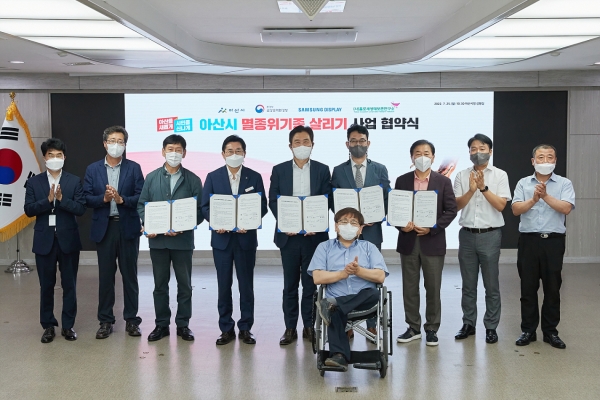 [Ytv영상스토리] 아산시와 환경부 금강유역환경청, 삼성디스플레이, 홀로세생태보존연구소, 송악면 동화3리 마을주민들이 25일 멸종위기종 살리기 사업 협약식을 체결하며 생물다양성 확보와 자연 자원 가치 증대에 나섰다.