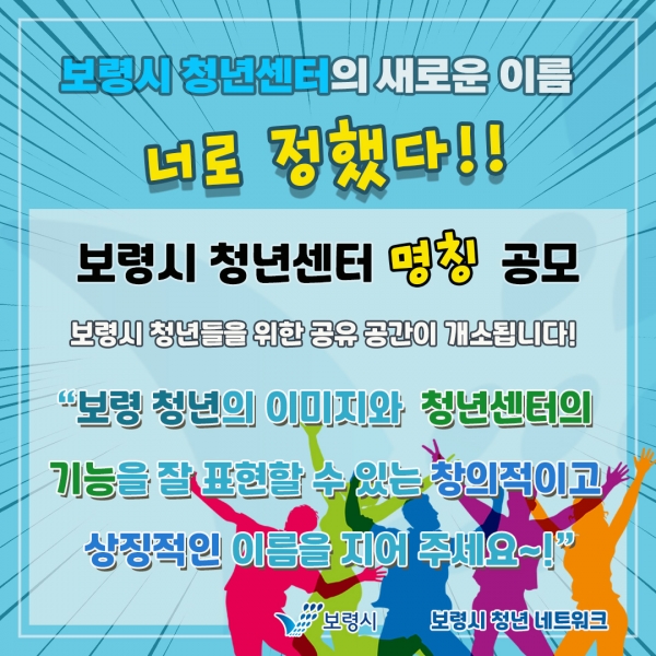 시는 당초에 청년센터의 명칭을 청년네트워크 위원들의 의견을 모아 선정하려 했으나 보령시 전체 청년의 참여로 명칭을 공모하자는 위원들의 의견에 따라 이번 이벤트를 진행하게 됐다.