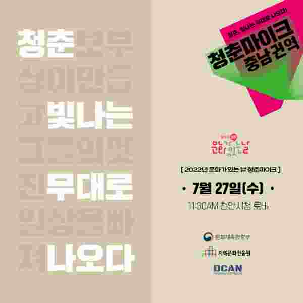 또 공연은 청춘마이크 충남권역 운영 주관사인 대전문화예술네트워크협동조합 유튜브에서 실시간 라이브 스트리밍을 통해서도 관람할 수 있다.