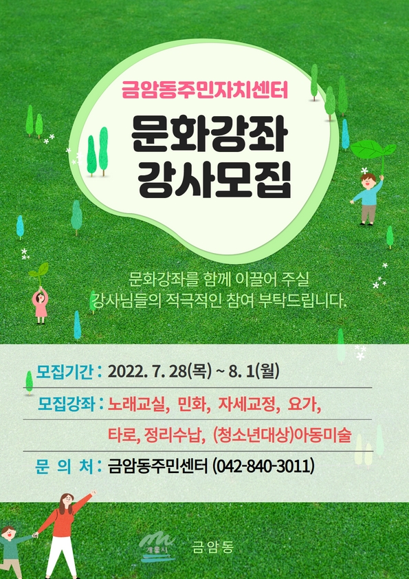 [Ytv영상스토리] 계룡시 금암동에서 2022년 하반기 주민자치센터 문화사랑방 강사를 공개 모집한다.