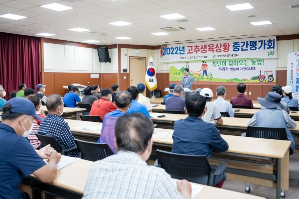 [Ytv영상스토리] 청양군농업기술센터가 지난 27일 대강당에서 고추 연구회원 등 재배 농가 60여명과 함께 올해 고추 생육상황을 점검한 결과 현재까지 양호한 상태인 것으로 나타났다.