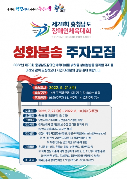 당진시, 충남장애인체전 성화봉송 주자 98명 모집