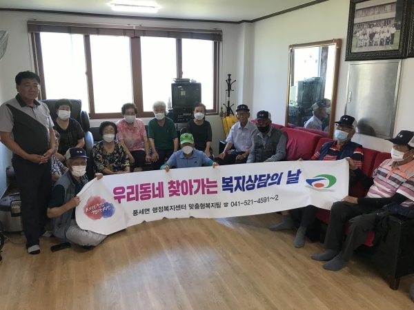 ‘우리동네 찾아가는 복지상담의 날’은 오는 11월까지 월 2회 풍세면 각 9개 마을 경로당에서 진행할 예정이다.