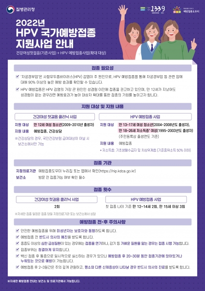 HPV 국가예방접종 지원대상자는 가까운 지정의료기관에 방문해 무료로 예방접종을 받을 수 있고 의료기관 안내는 질병청 예방접종도우미 누리집에서 확인할 수 있다.