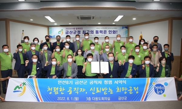 [Ytv영상스토리] 금산군은 지난 1일 군청 다용도회의실에서 청렴한 조직문화를 다짐하기 위한 민선8기 공직자 청렴서약식을 개최했다.