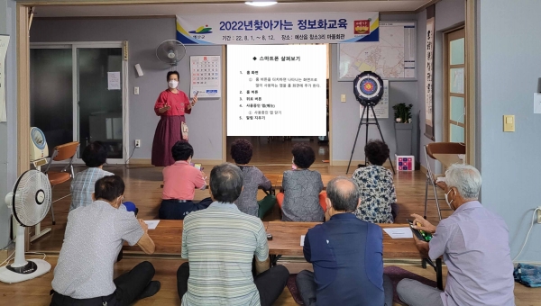 군은 군청 전산교육장 방문이 어려운 어르신을 대상으로 8월 1일부터 12일까지 예산읍 창소3리 마을회관, 8월 16일부터 26일까지 대술면 화산리 마을회관, 8월 29일부터 9월 2일까지 삽교읍 신가1리 초록꿈 작은도서관을 직접 방문해 스마트폰 교육을 실시하고 있다.