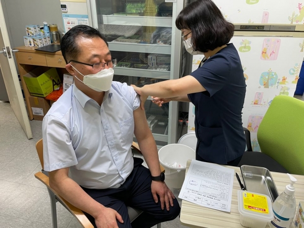 이날 보건소 소속 간부 공무원들은 8월 1일부터 본격적으로 시행되는 50대 4차 예약접종 일정에 따라 자발적으로 접종에 동참했다.