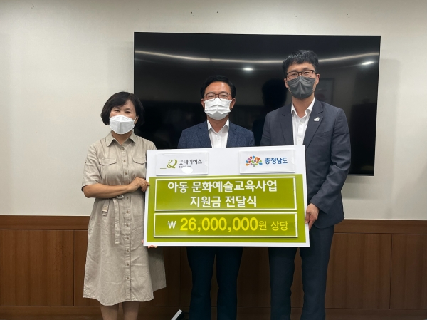[Ytv영상스토리] 충남도는 사회복지법인 굿네이버스로부터 취약계층 아동의 문화예술체험 기회 확대를 위한 문화예술교육 지원금 2550만원을 전달받았다고 3일 밝혔다.