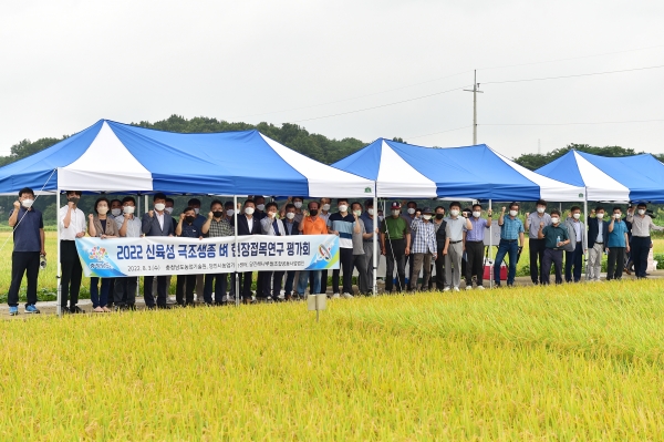 도 농업기술원은 3일 당진 송악읍 석포리 신품종 재배단지에서 미질과 병해충 저항성을 개선한 극조생종 벼 신품종 현장 평가회를 개최했다.