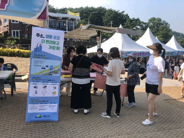 군은 지난 7월 30일 의좋은 형제 공원에서 개최된 ‘임존성 물총 대첩’ 및 지난 7월 2일 예당호 출렁다리 문화광장에서 개최된 ‘긍모로의 약속’ 등 문화가 있는 날 행사와 ‘제49회 윤봉길 평화축제’, ‘지적재조사 주민설명회’ 등 다양한 현장에 방문해 도로명주소를 홍보하고 있다.