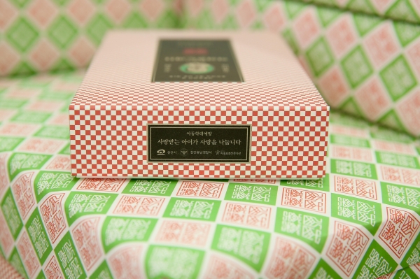호두과자 박스와 포장지에 ‘사랑받는 아이가 사랑을 나눕니다’라는 문구를 삽입해 아동이 행복한 세상을 만들어가자는 공감대를 형성하고자 했다.