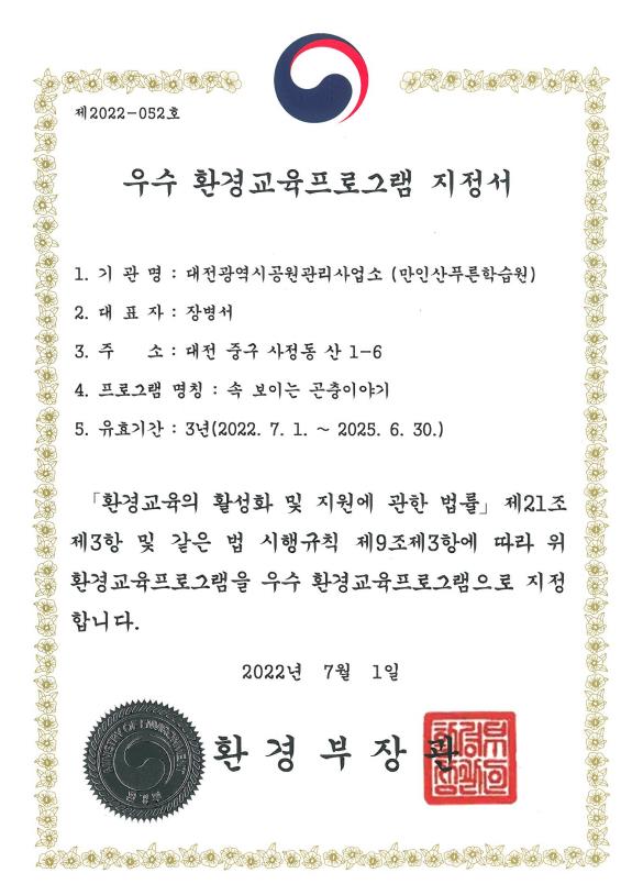 신용현 시 환경녹지국장은“이번 프로그램은 코로나 19 기간에 받은 프로그램이라서 더욱 의미가 있는 성과”며 “앞으로도 더 많은 프로그램을 개발해 지정 받도록 노력하겠다”고 말했다.