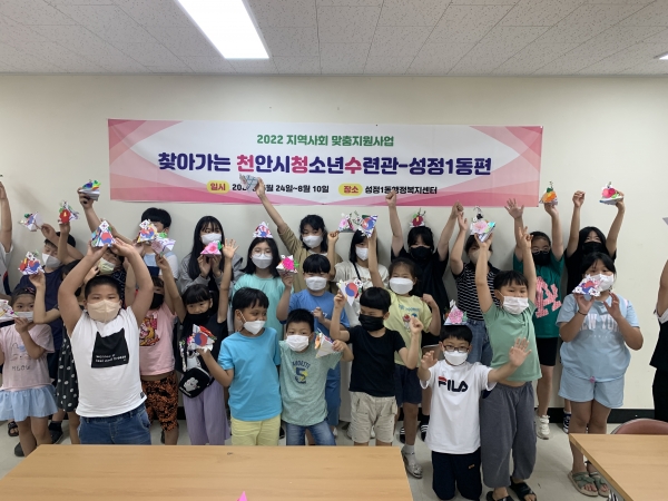 초등 청소년 50명이 참여한 이번 프로그램은 창의미술과 창의보드게임 체험을 제공했으며 성정1동 행정복지센터에서 유휴공간을, 수련관에서 활동프로그램을 지원했다.