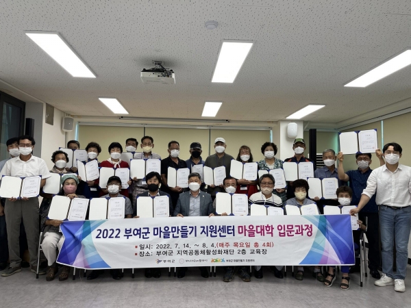 군 관계자는 “이번 마을대학 입문과정을 통해 부여군 주민분들의 마을만들기에 관한 관심이 더욱 높아졌으면 한다”고 전했다.