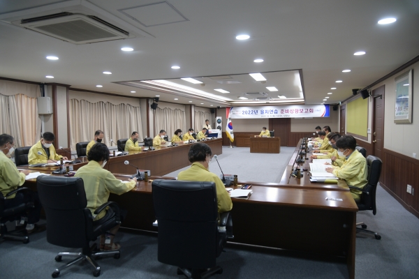 이 날 보고회는 김영기 안전총괄과장의 준비상황 총괄보고에 이어 2022년도 을지연습 시 도출된 문제점 반영사항과 그동안 추진사항, 을지Ⅰ·Ⅱ·Ⅲ종 사태 전개에 따른 실·과·소별 조치계획 보고 순으로 진행됐다.