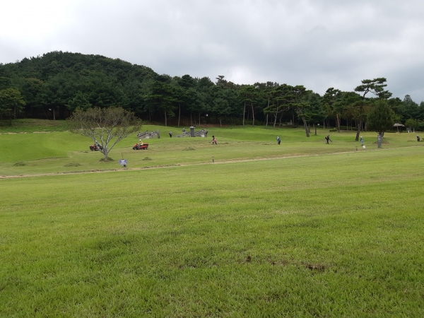 추사고택은 4만평의 넓은 녹지공간으로 조성돼 있어 관리에 어려움이 있고 특히 올해는 장마가 잦아 잔디가 자라는 속도가 깎는 속도보다 빠른 실정이다.