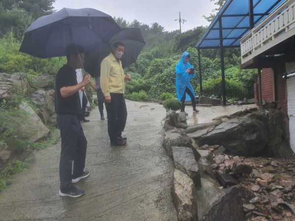 이를 포함해 주택침수 24곳, 주택 토사유출 8개소, 도로 10개소, 소규모 공공시설 12개소 등이 크고 작은 피해를 입은 것으로 집계됐다.
