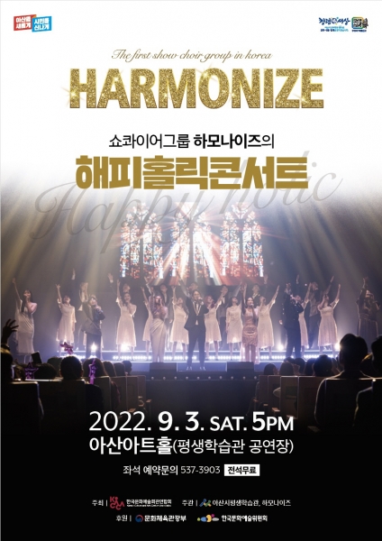 [Ytv영상스토리] 아산시가 오는 9월 3일 아산아트홀에서 쇼콰이어 그룹 하모나이즈의 ‘해피홀릭콘서트’ 공연을 개최한다.