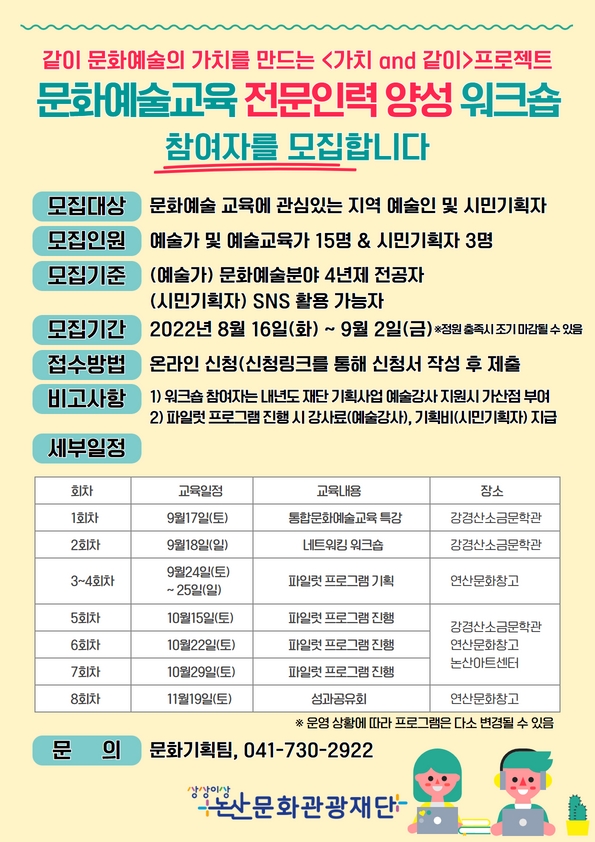 논산문화관광재단, 문화예술교육 전문인력 양성 워크숍 참여자 모집
