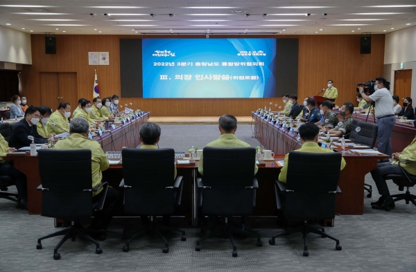 [Ytv영상스토리] 충남도는 18일 도청 대회의실에서 오는 22일부터 4일간 진행하는 을지연습과 연계해 ‘2022년 3분기 통합방위협의회’를 열고 민·관·군·경·소방 통합방위 태세를 점검했다.