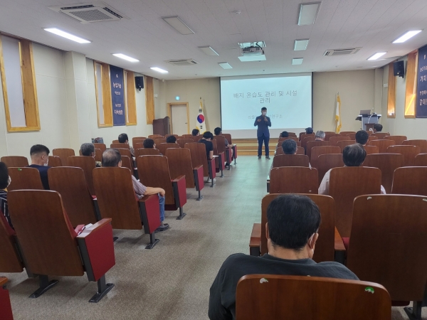 이번 교육은 고품질 버섯 재배를 위한 배지 및 시설 관리에 대해 리을농산종균 연구소 홍기성 소장을 강사로 해 진행됐다.