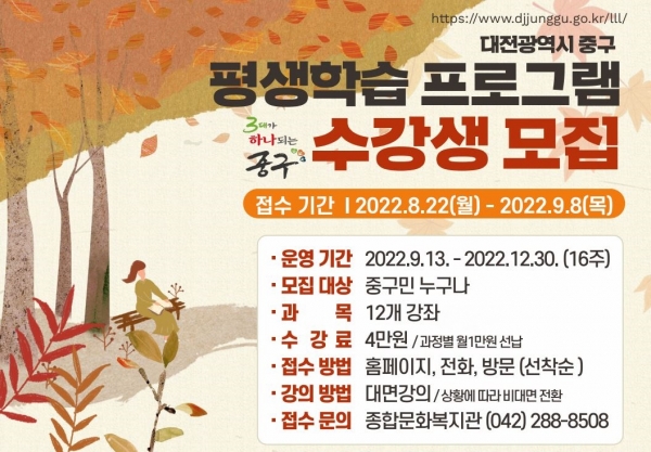 대전 중구, 하반기 평생학습 프로그램 수강생 모집
